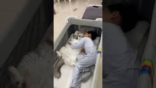 我家猫等孩子来睡觉了