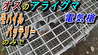 モバイルバッテリーのみでオスのアライグマを止め差し 2023/11/9 アライグマ モバイルバッテリーのみでオスのアライグマを止め差し 箱罠でオスのアライグマを捕獲し電気槍で止め差しをします。今回はインバーターを使用せずにモバイルバッテリーのみで止め …