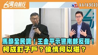 2023.11.13【台灣向前行 Part2】 馬籲全民調!王金平示警南部反彈! 柯成釘子戶?侯情何以堪? 2023/11/13 馬 2023.11.13【台灣向前行 Part2】 馬籲全民調!王金平示警南部反彈! 柯成釘子戶?侯情何以堪? 賴清德有距離感?蕭美琴各方面互補!民進黨王牌!藍營勁敵! 馬辦籲不要攻擊柯!邏輯?詹為元:比民調要歌功頌德柯文哲?