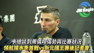 卡總談到周儀翔傷勢與比賽狀況 領航猿本季首戰vs新北國王賽後記者會! 2023/11/20 猿 卡總談到周儀翔傷勢與比賽狀況 領航猿本季首戰vs新北國王賽後記者會! 歡迎加入頻道會員支持我們更新影片:https://reurl.cc/E1vGXa ——- #卡總#周儀翔受傷#領航猿賽後記者會——- 這裡是FAST SPORTS …