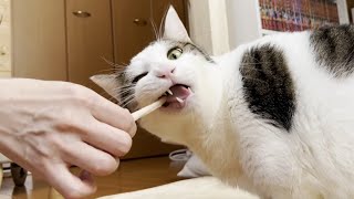 カミカミ、クチャクチャ、ペッをしながらデンタルケアをする猫 2023/11/27 ネコ カミカミ、クチャクチャ、ペッをしながらデンタルケアをする猫 噛むだけで歯をキレイにしてくれるという神アイテムでお口をケアする豆大福がかわいいです♪ いつもご視聴いただき、 …