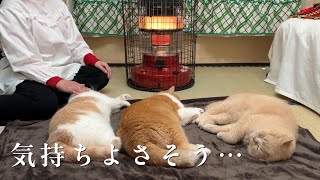 ストーブが好きすぎて動けなくなった猫たち