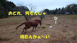 肉食動物を追いかける草食動物 2023/11/28 動物 肉食動物を追いかける草食動物 「会員さんは見た」シリーズ。 クラブのワンコさんを追いかけ回すロッキー。 遊んでいるのか、それとも縄張りアピールなのか?