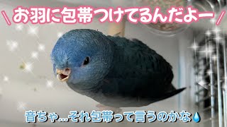 飛べない鳥のケージと包帯姿が可愛いサザナミインコの音ちゃん 2023/12/8 鳥 飛べない鳥のケージと包帯姿が可愛いサザナミインコの音ちゃん bgmシャイニングスター #ぴのニコチャンネル #サザナミインコ #インコケージ.