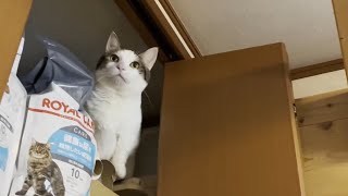 出られなくなって困ってしまうポッチャリな猫 2023/12/13 ネコ 出られなくなって困ってしまうポッチャリな猫 なぜか布団の上に飛び降りるのを躊躇する豆大福です^^ 別ルートで下へ降りれるのですが、それもしないでお父さんにヘルプ …