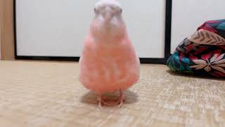 走るピンクの鳥。アキクサインコ