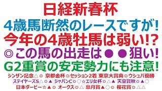 日経新春杯2024予想 4歳馬断然のレースですが! 今年の4歳牡馬は弱い!? ◎この馬の出走は●●狙いですね。G2重賞の安定勢力にも注意です。 2024/1/9 馬 日経新春杯2024予想 4歳馬断然のレースですが! 今年の4歳牡馬は弱い!? ◎この馬の出走は●●狙いですね。G2重賞の安定勢力にも注意です。 日経新春杯2024の予想です。 明け4歳馬vs古馬陣の対決。有馬記念の結果を見ても、古馬陣に分がありそうです。今回は超一線級 …