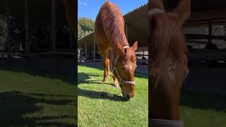りんご汁を牛に見せつけている馬