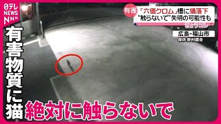 【「六価クロム」槽に猫が落下】そのまま逃げたか 絶対に触らないで…失明の可能性も 広島・福山市 2024/3/12 ネコ 【「六価クロム」槽に猫が落下】そのまま逃げたか 絶対に触らないで…失明の可能性も 広島・福山市 広島県福山市の工場で有害物質の中に猫が落下。そのまま逃げたとみられ、市は絶対に触らないよう呼びかけています。 この動画 …