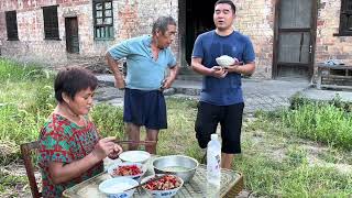 烧火起锅,直接用农家鲜红椒爆炒猪骨肉,太美味了,又吃了一大碗