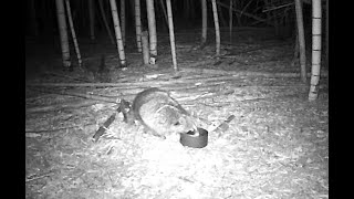 罠の近くに置いた水を飲むアライグマ。