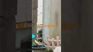 庭に変な動物が侵入して、猫の餌をたいらげてた。