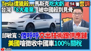 【94要客訴】Tesla遭獵殺…馬斯克吃大虧!台灣「8大產業」被中國殺到見骨! 邱敏寬:傻呼呼交出技術跟供應鏈!美國嗆徵收中國車100%關稅 2024/4/4 馬 【94要客訴】Tesla遭獵殺…馬斯克吃大虧!台灣「8大產業」被中國殺到見骨! 邱敏寬:傻呼呼交出技術跟供應鏈!美國嗆徵收中國車100%關稅 Tesla #馬斯克#台灣#中國#美國主持人:李正皓來賓:財經專家邱敏寬Tesla遭獵殺…馬斯克吃大虧!台商還敢去投資? 台灣「8大 …