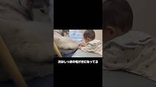 お互いを意識し合うハスキーと赤ちゃん #シベリアンハスキー #犬と赤ちゃん