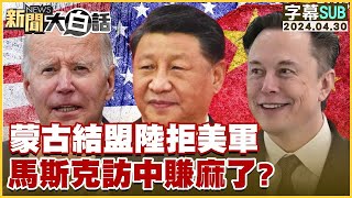 [SUB]蒙古結盟陸拒美軍 馬斯克訪中賺麻了? 新聞大白話 20240430 (字幕版) 2024/5/2 馬 [SUB]蒙古結盟陸拒美軍 馬斯克訪中賺麻了? 新聞大白話 20240430 (字幕版) TVBS新書《步步為營》點擊購書優惠連結,解析美中台關係 https://bit.ly/3Rxd8hf ○TVBS新聞APP全新改版登場! 快來下載再抽 …
