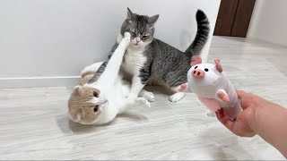 猫たちに新しいぬいぐるみをプレゼントしたら取り合いでまさかのこうなっちゃいました…笑 2024/5/3 ネコ 猫たちに新しいぬいぐるみをプレゼントしたら取り合いでまさかのこうなっちゃいました…笑 とん様のご購入はこちらから⬇️ https://amzn.asia/d/2ZjdpXL 猫様たちに大好評のとん様に色違いが登場しました! 蹴ったり抱い …