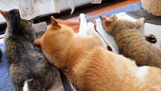 柴犬の隣でお姉ちゃん猫が甘えていると次から次へと後輩猫たちが集まってきました 2024/5/30 ネコ 柴犬の隣でお姉ちゃん猫が甘えていると次から次へと後輩猫たちが集まってきました 柴犬リコママのそばが大好きな大お姉ちゃんのリリ リリがリコのそばで甘えていると、後輩猫たちが、ぞろぞろと…(*´艸`) リリ …