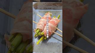 豚バラ ニンニクの芽 肉巻き グルメ レシピ 鉄板焼き 串焼き