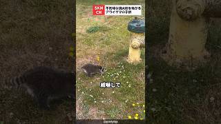 消火栓と戦うアライグマの子供
